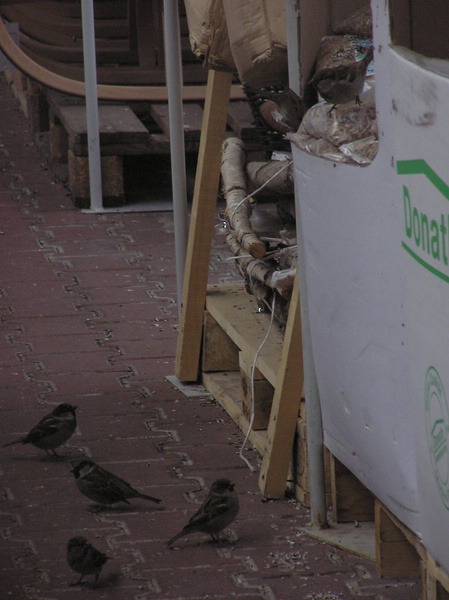 Etwas extrem ausgedrückt könnte man sagen, wenn man Großpapageien vor die Wahl zwischen artgerechtem Leben in künstlicher Umgebung (mit all seinen Sicherheiten) und artgerechtem Leben in natürlicher Umgebung (mit all seinen Risiken) stellen würde, würden sie sich mit hoher Wahrscheinlichkeit für ersteres entscheiden. Ich bin mir auch sehr sicher, dass Papageien beispielsweise den nur in freier Wildbahn gebotenen besonderen Kick wie etwa gerade noch unter dem Verlust einiger Federn den Fängen eines Raubvogels entkommen zu sein, bei einem Leben in Menschenobhut nicht missen werden. Nachstehend ein Bild von Wildvögeln die ihre Wahl für eine künstliche Umgebung ganz aus freien Stücken getroffen haben: Sperlinge, die ganzjährig in einem Baumarkt leben.
