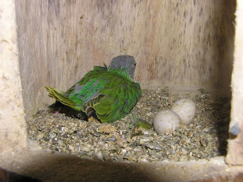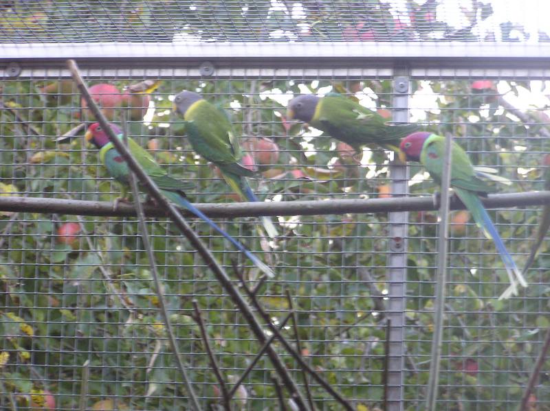 Neben den Amazonen halte ich noch Pflaumenkopfsittiche, die nach einigen Jahren in einer provisorischen Unterkunft nun endlich im September 2008 in ihr endgültiges Domizil, bestehend aus einer Innen- und Aussenvoliere, umziehen konnten. Die Aussenvoliere ist durch ein Fenster von der Innenvoliere getrennt. Bei offenem Fenster bilden die beiden Volieren einen gemeinsamen Flugraum von etwa 10 Quadratmetern.