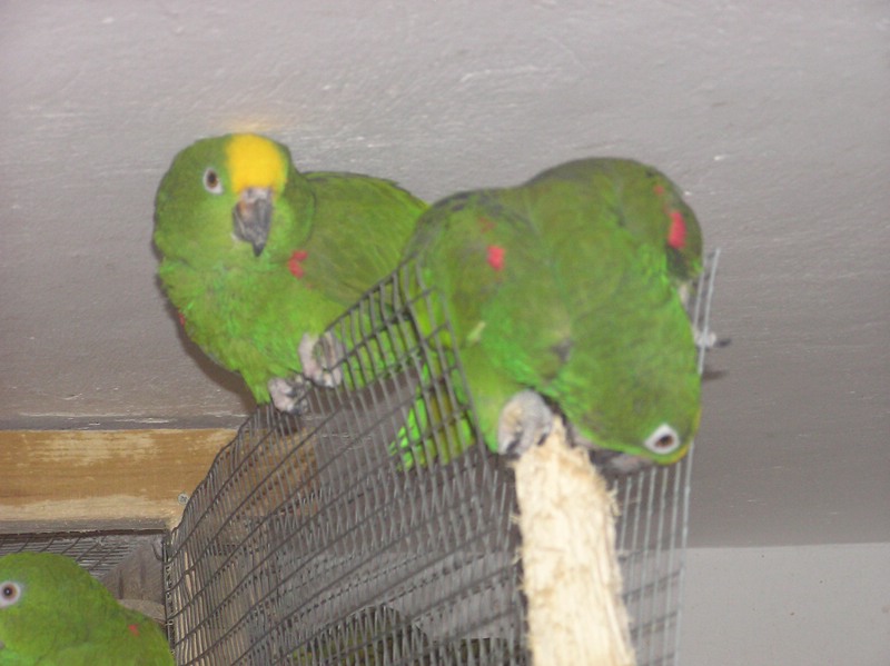 Als Bauweise für den Hobbybereich bieten sich damit 2 Möglichkeiten an: die tragende Konstruktion aus Holz oder aus Vierkant-Aluprofilen. Das ganze wird dann mit Volierendraht bespannt, den es in der Ausführung Eisen verzinkt oder Edelstahl gibt, wobei letzteres ungleich teurer ist (ca. Faktor 6). Da es in seltenen Fällen durch Aufnahme von Zink akute (Zinknasen) oder schleichende Vergiftungen gibt, wird meist Edelstahl als Material für Volierendraht empfohlen, was natürlich eine gute Empfehlung ist, wenn der Preis keine Rolle spielt. Ich habe anfangs nur verzinkten Draht verwendet und damit nie Probleme gehabt. Inzwischen habe ich auch Edelstahl im Einsatz, ich verwende ihn jetzt im Innenbereich. Im Außenbereich bleibe ich dagegen beim preisgünstigeren verzinkten Draht, denn erfahrungsgemäß haben die Vögel hier nur sehr wenig Kontakt mit dem Volierendraht. Für mittelgroße Papageien wie Amazonen ist die Maschenweite 19mm eine gute Lösung. Ich befestige das Drahtgitter am Rahmen bei Alubauweise mit Blindnieten, bei Holzbauweise mit Schrauben (siehe oben) und den entsprechenden Scheiben.
