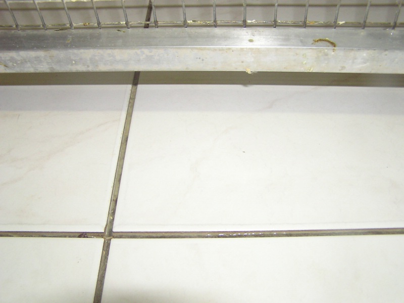 Fliesen sind für stark beanspruchte Böden sicher nicht die optimale Lösung, vor allem werden bei häufiger Reinigung die Fugen, wie auf dem Bild zu sehen, relativ schnell ausgewaschen. Da es sich bei Fliesen ja um keramisches Material handelt, ist die Oberfläche nicht absolut plan, was das Abkratzen von Kot erschwert. Bei der Grobreinigung mit einer Spachtel kann eine Fliese zudem an den Ecken sehr leicht beschädigt werden, denn hart ist ja nur die Glasur. Fliesen sind daher vor allem dann gut geeignet wenn sie nicht sehr stark durch Kot verschmutzt werden und wenn der Raum über einen Ablauf verfügt. Man kann dann den Boden zur Reinigung oder auch beim Baden der Vögel problemlos unter Wasser setzen, eventuell sogar mit einem Hochdruckreiniger bearbeiten.