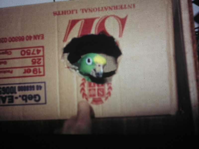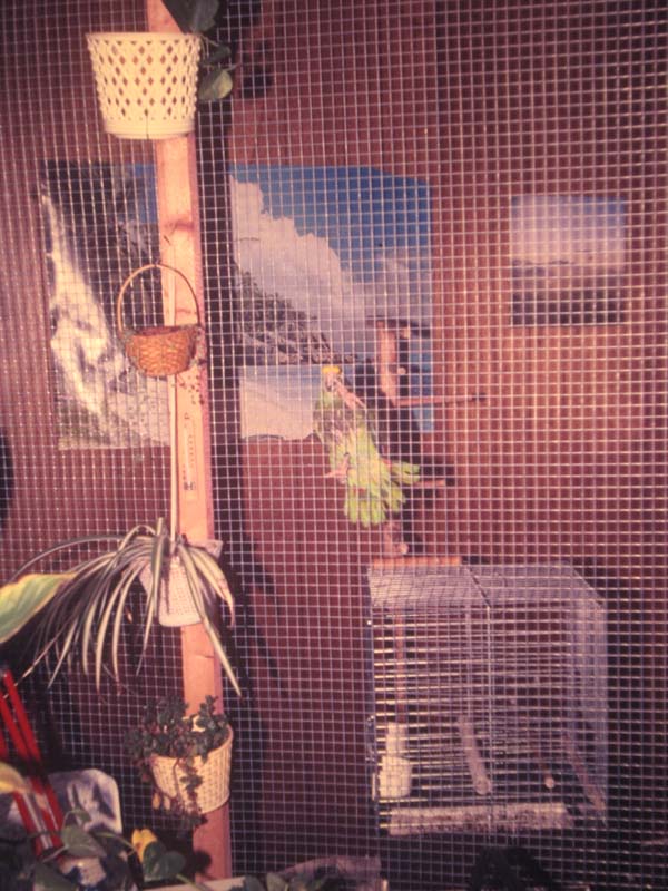 Im neuen Haus bewohnte Lora dann erst mal mein Computerzimmer. Den Computer deckte ich mit einem Tuch ab, sodaß ausser einem durchgebissenem Mauskabel keine weiteren Schäden entstanden. Nach langer und mühsamer Suche gelang es dann endlich im Jahr 1987 eine Partnerin für Lora zu finden. Obwohl ich meine Kontakte mit Lora nun auf ein Minimum beschränkte sah es lange so aus als würden die beiden Amazonen nie ein Paar, denn wenn ich das Zimmer betrat saßen sie immer getrennt und ignorierten sich völlig. Es verging ein weiteres Jahr ohne dass es irgend einen sichtbaren Fortschritt in Sachen Partnerschaft gegeben hatte. So war es völlig überraschend für mich als ich eins Tages das Zimmer betrat und die beiden Amazonen bei einer Kopulation überraschte. Es hatte sich also doch etwas getan, nur hatten die beiden es geheim gehalten. Als Bruthöhle bekammen sie erst mal wieder eine mit Holzwolle gefüllte Schachtel. Eine richtige Nisthöhle sollten die beiden erst bekommen, wenn ihre endgültige Behausung, ein eigenes Zimmer im im Dachgeschoß fertig war. Tatsächlich brütete das Weibchen in dann den Jahren 1988 und 89 in dieser provisorischen Bruthöhle, die Eier waren jedoch alle unbefruchtet.